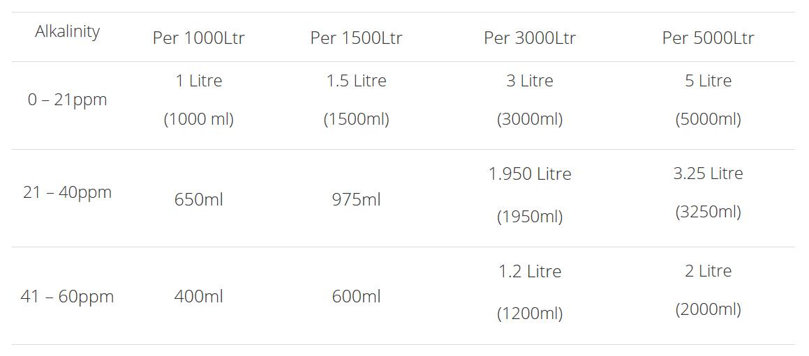 For Spas up to 3000 litres add 380ml / 1000 litres and circulate for 30 minutes.